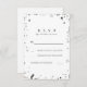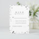Chic white and silver wedding RSVP cards feature gold confetti dots.