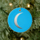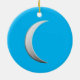 Silver crescent moon - turquoise background ceramic tree decoration