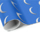 Silver, metallic look, crescent moons against a cobalt blue sky background