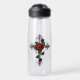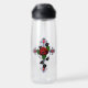 Silver Cross with a Red Rose Water Bottle