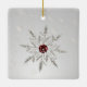 Silver Crystal Snowflake With Red Rhinestone Ceramic Ornament