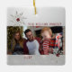 at christmass as a hanging decration for the chritmass tree.. its white porcline or cramic but very well made with added photo on one side.. also has a lovley red bag to keep it in.. execlent printed text in bold and black stands out well aganst the blue background of the photo.