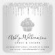 Present your best self to your clients, with these elegant, sophisticated, simple, and modern custom name square stickers. A sparkly, silver cupcake, script handwritten typography and glitter drips overlay a faux metallic silver ombre background. Personalise with your full name, business, address, phone number, and other info. Makes a chic, professional, and stylish statement for your business. Matching business cards are also available: