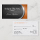 Appointment cards with unique dark grey & orange and silver design accents. Personalised with the Business' name & information, and the specialist's name. Perfect for any trendy, appointment setting business.