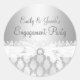 Engagement Sticker. Silver damask with bow & lace. Exclusive Zazzle. Customise with your own details. PLEASE NOTE all flat images! They Do NOT have real Lace, bows, Diamonds or Jewels!!