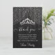 Silver Diamond Tiara on Black Wood Sweet Sixteen Thank You Card
