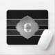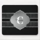 Custom black square mouse pad with a silver diamond pattern. You can add your name and initial in the centre of the monogram by using the personalised template.