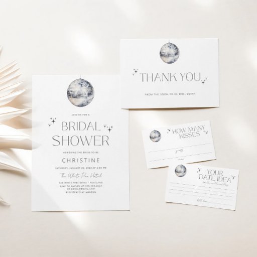 Silver Disco Ball Sparkle Bridal Shower Invitation