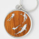 Silver Diver with Sharks on Teak Veneer Style Key Ring