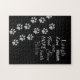 Silver Dog Paws black Background Print Pattern Jigsaw Puzzle