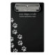 Silver Dog Paws black Background Print Pattern Mini Clipboard