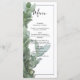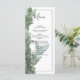 This design features silver dollar eucalyptus leaves and branches. The beautiful greenery of the eucalyptus leaves compliment the elegant black modern thin border surrounding the wedding wording. A perfect fusion of modern and chic with eucalyptus silver green colour tones. Silver green, black and white are a perfect match for a rustic greenery themed wedding. Unique wedding menu card design with modern elements. Matching wedding invitations and other stationery items are also available.