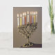 Send Chanukah greetings with a elegant silver menorah with lit candles.