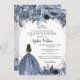 Silver Dusty Blue Floral Princess Quinceañera Invitation