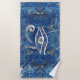 Silver Egyptian Eye of Horus on blue marble Beach Towel