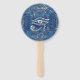 Silver Egyptian Eye of Horus on blue marble Hand Fan