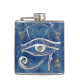Silver Egyptian Eye of Horus on blue marble Hip Flask