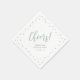 This chic personalised napkin will add stylish detail to your special day. This party napkin design features simple confetti and typography " Cheers!" in silver glitter texture. You can customise the text to any age or event. Matching birthday party invitations and stationeries are available in my shop. BaraBomDesign.