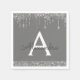 Silver, Grey (Grey) and White Faux Glitter and Sparkle Elegant Monogram Birthday Party Napkins. This Birthday Party, Bridal Shower, Wedding, Baby Shower Napkin can be customised to include your initial and first name.