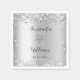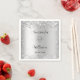 A faux silver looking background. Decorated with confetti. Personalise and add your names and a date.