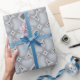 This wrapping paper features a repeating tile pattern of silver fade hearts surrounding a central diamond. Great wrapping paper for weddings and silver anniversary gifts.
