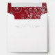 This beautiful envelope features a customisable return address with a silver floral flourish, and a deep red inside flap with a frilly faux foil filigree. Perfect compliment to your wedding invitations.