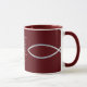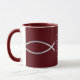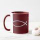 Silver Fish on Burgundy background decorate this mug with "And Jesus said unto them, Come ye after me, and I will make you to become fishers of men." Mark 1:17
