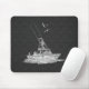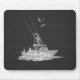 Silver Fishing Boat on Carbon Fibre Mouse Mat