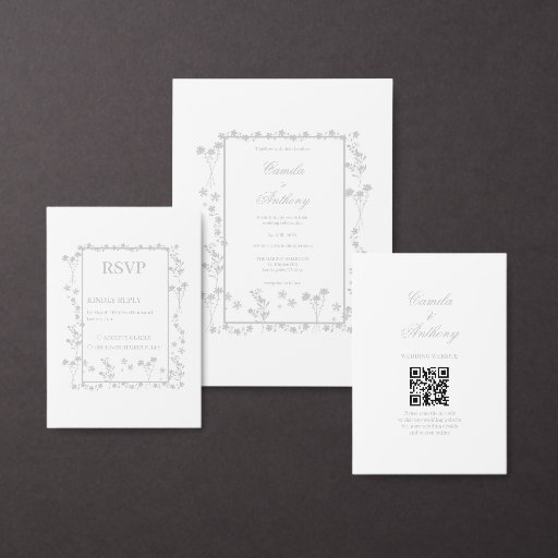 Silver Floral Border Wedding Menu