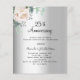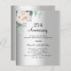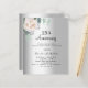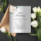 A faux silver looking background. Decorated with a white floral, peony flower and green watercolored eucalyptus greenery. Personalise and add your names and the details.