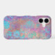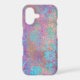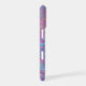 The feature on this attractive phone case is a pretty ice blue floral pattern which is laid over a colourful abstract background that seems filled with light! Colours in the background include purple and peach, with various shades between. Pretty!