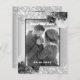 Faux silver looking background, decorated with florals, flowers and faux silver glitter, sparkles. Personalise and add your photo, names and wedding details.