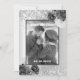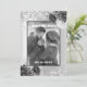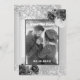 Faux silver looking background, decorated with florals, flowers and faux silver glitter, sparkles. Personalise and add your photo, names and wedding details.