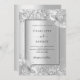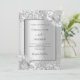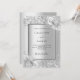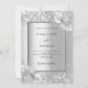 Faux silver looking background decorated with florals, flowers and faux silver confetti. Personalise and add your names and wedding details. Black letters.