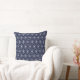 Throw pillow with beautiful silver flower circles on blue background. This design is known as the flower of life and it is revered by major religions and many cultures. it means we all are interconnected.