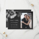 This Save the date card features silver gray flowers on a black background.