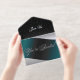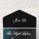 PK Forever Yours Paperie's Silver Foil All in One Rehearsal Dinner Invitation is a sophisticated and elegant with shining silver foil text in a beautiful Flemish font printed on alternating black and gradient jeweled green and crisp white background. Part of our Tuxedo Collection this All in One Invitation makes rsvp convenient for your guests. They simply add their name and number of attendees and detach and mail the self addressed stamped card from the center of the invitation. These invitations have 10+ customizable fields including custom images of your couple silhouette and your signature monogram created by you or contact PK Paperie and we will design them for you to use across all your wedding stationery and for years to come. Available with crisp white envelopes that Zazzle will even address for you. Purchase these invitations separately or as part of a full suite from our tuxedo collection. Custom image design is an additional charge-includes full license to use and reproduce images.