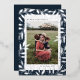 An elegant photo holiday card featuring hand drawn pine branches in REAL silver foil and navy blue colour palette designed by Stacey Meacham. The back has 2 more photos and a heartfelt holiday messages to friends and family. Click the edit button to add your photo and details.