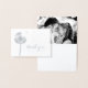 A silver foil dandelion flower with floating seeds accents this grey thank you card, making it a perfect simple and elegant thank you card. The inside of this card has room for a special photo, and an area left blank for your own personal message. A coordinating grey envelope further accents the silver foil of this thank you card.