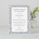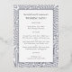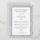Rectangular wedding menu template with a silver foil border. Grey text is printed over a white panel bordered by a geometric pattern which is the foil part of this card. Reverse is solid grey. Only the border will be foil and you may change it to gold or rose gold.