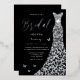 Silver Foil Heart Gown with Black Bridal Shower Foil Invitation