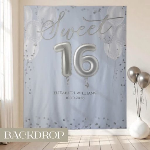 Silver Foil Sweet 16 Birthday Balloons Party Blue Napkin