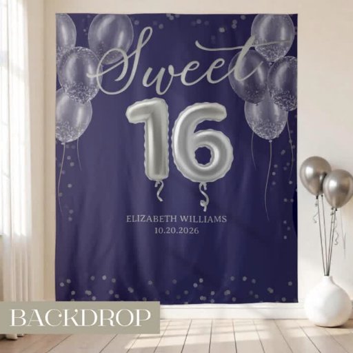 Royal Blue Silver Foil Sweet 16 Bday Balloons PartDesigned by CaMi Designs