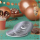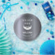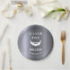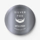 Silver fox theme for a birthday party for men, guys. A white icon a male beard and moustache. A dark faux silver foil metallic looking background. Personalise and add a name and a date. With the text: Silver Fox.