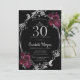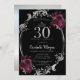 Silver Frame Burgundy Roses Black 30th Birthday Invitation