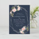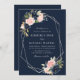 silver frame Navy and blush floral wedding Invitation