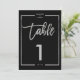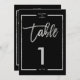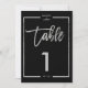 Silver typography on customisable black silver half frame, and faux silver geometric stripes chic table number wedding , perfect for elegant wedding,