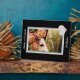 A pretty silver colored frame holds your photograph on this personalized Silver Wedding Anniversary photo plaque. A silver heart is at the bottom right. The text, also in silver, is fully customizable, so you may make it say whatever you'd like. You can even remove the 25 Years and make it for any anniversary celebration, or even for a wedding photo. Everything is placed on a dramatic black background. Choose Customize it and use the arrow keys to move your photograph into the best position.