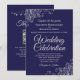 Silver Frills on Navy Blue Elegant QR Code Wedding Invitation