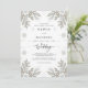Evoke a sense of serene winter elegance with this design. Delicate, frosty foliage frames the scene, complemented by subtle snowflake accents, creating a cool, ethereal atmosphere for your special day.